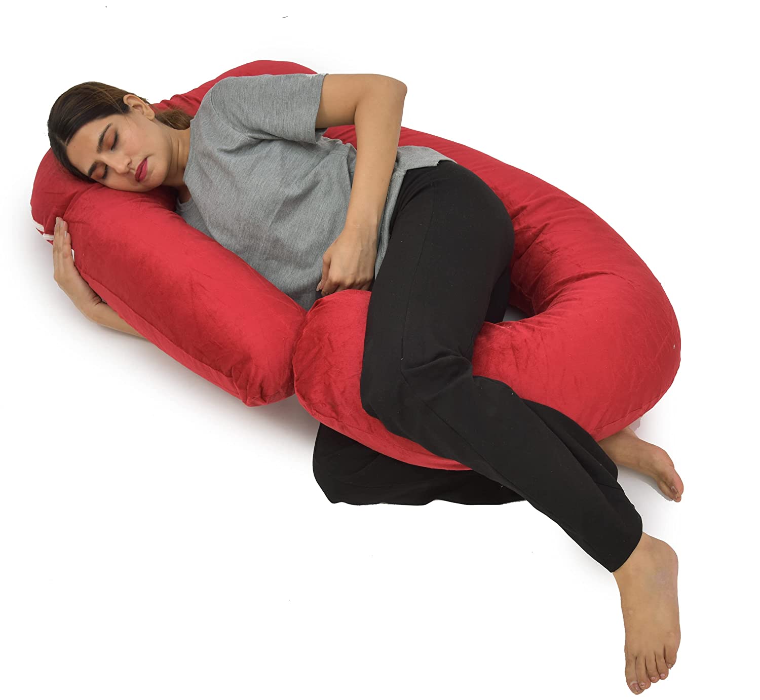 - [Premium filling material]: Environmental protection, no harmful substances, good resilience, durable, soft touch. The thickness can be adjusted freely by increasing or decreasing the filler. 100% velvet cover, skin-friendly. The body pillow for sleeping U shape will provide you a quiet and comfortable night.